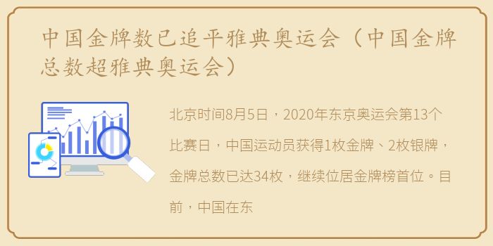 目前,中国在东京奥运会获得的金牌数已经超过雅典奥运会(32枚),在历届奥运会中排名第三,伦敦奥运会38枚,北京奥运会48枚(另有3枚被取消)。