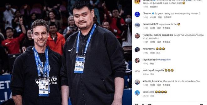 女篮世界杯推广大使、NBA著名球星、西班牙黄金一代核心保罗加索尔(Pau Gasol)更新了自己的社交媒体,与姚明合影。