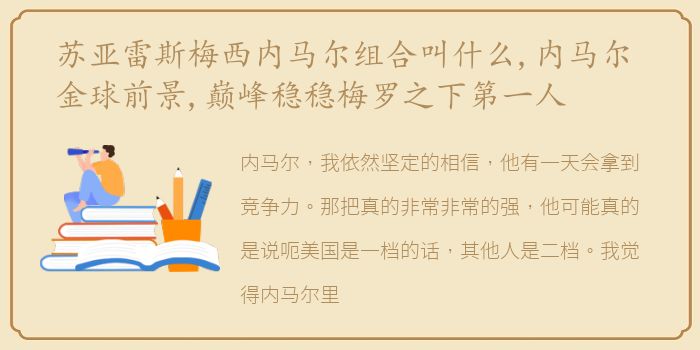 内马尔,我依然坚定的相信,他有一天会拿到竞争力。那把真的非常非常的强,他可能真的是说呃美国是一档的话,其他人是二档。