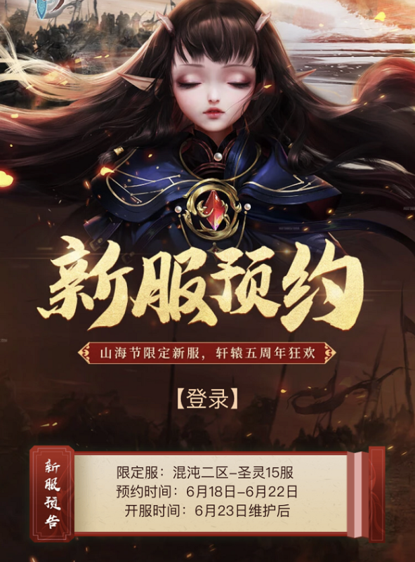 1.本次新服预约活动仅针对混沌区2-圣灵15服,预计2022年6月23日开启。