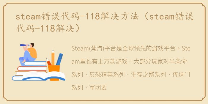 玩家可以在Steam商城购买游戏或者找一些免费的游戏来玩。但是很多玩家在进入Steam商城的时候都有错误码-118的问题,甚至进入Steam的创意工坊和简介界面都会出现错误生成-118等问题。来看看下面我们分享的解决方案吧~