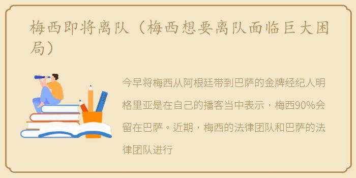 今早将梅西从阿根廷带到巴萨的金牌经纪人明格里亚是在自己的播客当中表示,梅西90%会留在巴萨。近期,梅西的法律团队和巴萨的法律团队进行了一次会面,会面的结果就是连梅西的法律团队都无法确定那条自由转会的条款究竟能否使用了。
