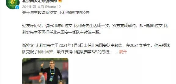 自去年1月6日上任以来,bilic在中国任教刚刚一年,但他的经历远没有上任之初个人想象的顺利。在俱乐部的公告中,特别强调bilic 带领团队克服各种困难。结合今年国安的波折,这个说法绝不是简单的礼节性的。