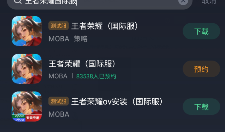 Android用户可以通过直接搜索王者荣耀国际服务在上述工具中。目前还没有正式的IOS版本,不过可以先在工具里预约,等游戏一上线就可以玩了。