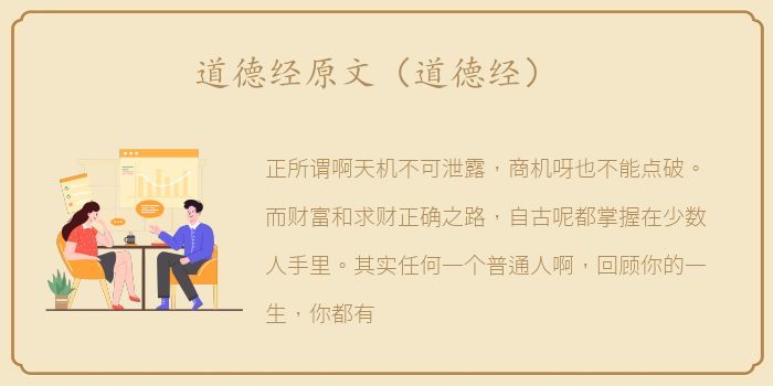 你可以看看天下任何的大商、人大学者,任何专业领域的高手,哪个不是家里供奉一套道德经的,你也可以问问你身边的成功的商人啊,他们是不是认为道德经是经商的圣书?如果那会儿你只有二三十岁未曾拜读这本书也就算了。因为天极商机和见识,在40岁之前你很难把握。