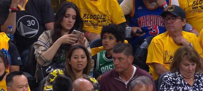 网易体育6月3日报道: 2022年NBA总决赛G1,勇士vs凯尔特人。 这场比赛在勇士队的主场蔡斯中心举行。然而绿军球员霍福德的妻子却带着儿子去看客场比赛,为霍福德加油。 人群中,霍福德妻子 繁荣之美脱颖而出。