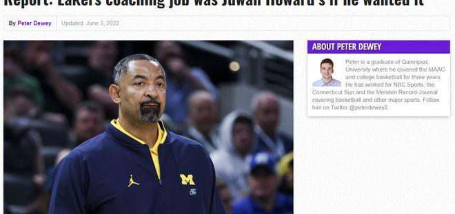 目前,霍华德已经在密歇根大学执教三个赛季,战绩为61胜32负。还获得了2020-21赛季十大赛区最佳教练的称号。很显然,他对密歇根大学有着深厚的感情,在那里他很自在,所以他自然不会我不想去湖人的错误的地方。
