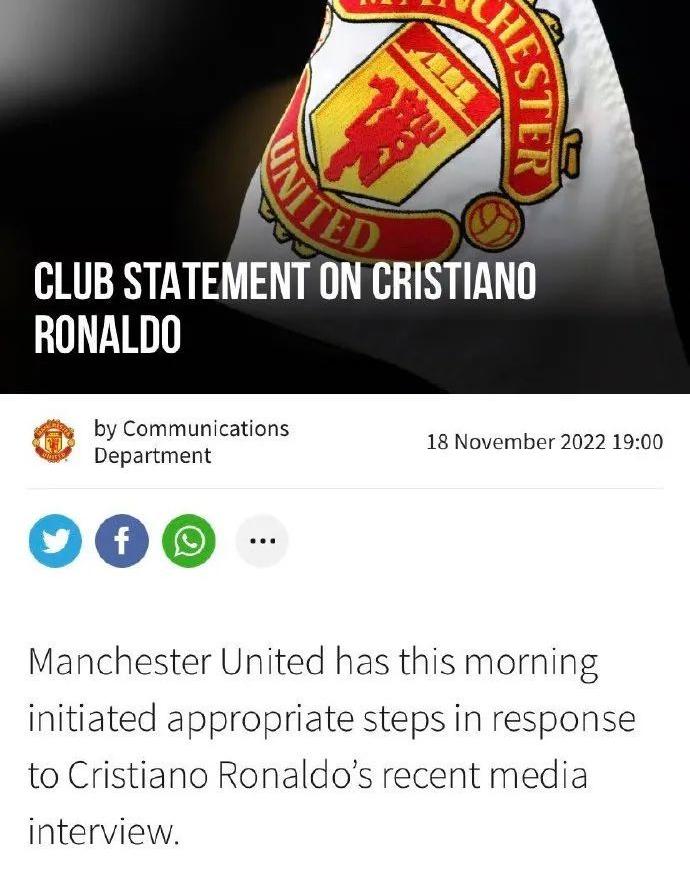 另外,曼联昨晚发表声明:曼联俱乐部已经开始适当行动,逐步应对日前c罗的采访。我们赢了在这件事有结论之前,我不做任何评论。"