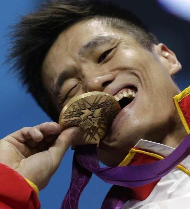 7月24日,在赢得女子中国选手孙登上领奖台时,激动地把金牌举到嘴边,模仿着那句著名的咬金牌行动。