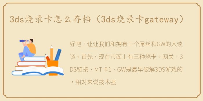 好吧,让让我们和拥有三个屌丝和GW的人谈谈。首先,现在市面上有三种烧卡。网关,3DS链接,MT卡1、GW是最早破解3DS游戏的。相对来说技术强很多(我用的是GW)。在这个阶段,我可以不玩两个游戏,口袋XY和野兽森林(动物的森林)。其他都没问题。不过1月4日发布的官方文章是XY,表示存档问题已经解决,GW2.0官方固件将支持pocket XY和beast 的森林;2、3DS链接是纯山寨。如果楼主关注烧屏的话,你会发现最近很多人都在用3DS链接,因为3DS技术有问题。1月13日GW官网发的消息也证实了这一点。我不不建议楼主入这个;3、MT卡基本用GW s技术,然后加入了一些自己独创的方法,在硬件上突破了单卡单ROM的设置。MT卡的切换游戏是按着烧卡上的按钮玩的,相当于治标不治本。GW s下一个版本应该会有自制系统,这才是真正的破解。综上所述,楼主如果想进,第一选择是Gateway,第二选择是MT,还有don 不考虑3DS Link。好,那就让说说GW和3DS1、3DS。烧录卡必须是固件版本低于4.5的机器。这是因为GW在4.5系统中发现了一个BUG,但是4.5以上的BUG已经被屏蔽了,所以在很长一段时间内,可能无法破解任何一台4.5以上的烧卡机器。想买4.5以下的机器(如果是4.5以下,可以用正版卡带的《路易鬼屋2》升级到4.5)2、,建议买3DSLL,不要买3DS,因为大屏真的酷多了,而且赢了没有裸眼3D指示器,玩起来不会很刺眼。至于别人说音频不如小三,我个人不我不这么认为,但无论如何它是。3DSLL彻底打败三笑说3、现在GW s破解是通过虚拟系统破解的。能不能玩新游戏,能不能跨地域,跟你的机器有关。你只需要确保你的机器在4.5以下,可以运行GW s破解程序(4.5以上,可以不运行没有错误的裂缝)。你运行破解后,可以备份你的低版本系统,然后进入GW的虚拟系统。在这个系统下,因为GW的固件支持,你可以玩任何地区的任何版本。比如你买了4.5的神游(因为神游是中文界面,自带马陆和旅行车7两个整版游戏),破解后可以玩日版、美版、欧版、港版。比如我是日版的大三学生,玩的是中国版的马里奥游戏。跨区域早已实现。4、至于是否支持游戏的更高版本,肯定是支持的。现在网上能下载的ROM除了Pocket XY和Animal Sen可以不要被玩弄。这两款游戏可以不能播放主要是因为存档格式,他们也在被破解。希望年前有固件更新。现在GW 的虚拟系统可以完全虚拟化一个新系统。比如我的虚拟系统是GW7.1(我电脑的固件是4.5,但是烧卡帮我虚拟了一个7.1),让我的电脑可以随意访问eshop,随意下载游戏的DLC更新包,打开Wifi擦Mii Square或者其他游戏。有钱人甚至可以用虚拟系统玩正版游戏(暂时烧卡只能连接eShop,不支持。也就是说,即使你用的是4.5的机器,只要GW被破解,你的虚拟系统更新到7.1,你还是可以玩正版或者盗版游戏的高配版,没问题!以后只要更新虚拟固件,就可以支持最新的游戏,比NDS烧卡好。好吧,打了这么多手,希望能帮到楼主。最后一个问题是,一卡多rom。如果楼主觉得有必要等到一张有多个rom的卡出来再买,那也没问题,但是我就是不我不知道要花多长时间。现在买一张烧卡,加N张TF(Mini SD)卡,就可以实现多个游戏。比如我有三张TF卡,一张口袋混沌,一张MH4,一张马来西亚3D。