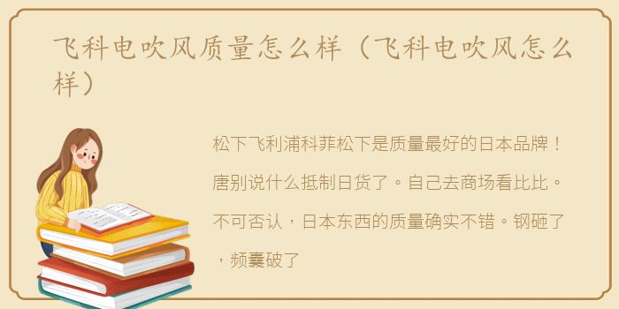 松下飞利浦科菲松下是质量最好的日本品牌!唐别说什么抵制日货了。自己去商场看比比。不可否认,日本东西的质量确实不错。钢砸了,频囊破了,模具破了!平毅、郝颖、尹莹、道谦奖,还有党猎鹰把它拿在手中,你会感觉到它的高品质!200元以上的飞利浦质量还不错。这个牌子用的比较多,但是事实证明高端的比较耐用,低端的风险很大。如果考虑200以下的,不妨买美的和博朗,比飞利浦实惠多了!科菲,我觉得报价便宜,风也一般,但关键是——热风会有烧焦的味道,所以我赢了不要讨论什么烧焦了。如果长期使用对头发有害,希望楼主慎重考虑,买一个你最满意的吹风机!