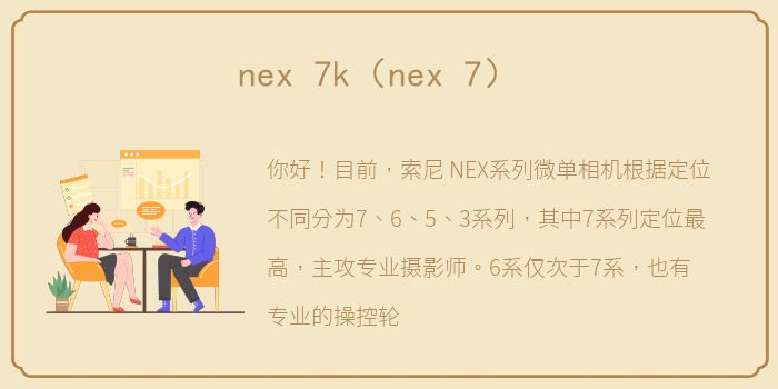你好!目前,索尼 NEX系列微单相机根据定位不同分为7、6、5、3系列,其中7系列定位最高,主攻专业摄影师。6系仅次于7系,也有专业的操控轮,定位中高端产品。