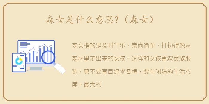 森女指的是及时行乐,崇尚简单,打扮得像从森林里走出来的女孩。这样的女孩喜欢民族服装,唐不要盲目追求名牌,要有闲适的生活态度。
