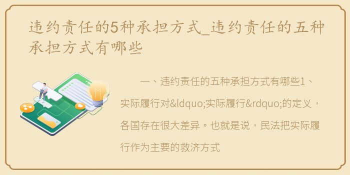 以上内容简要分析了承担违约责任的五种方式。还要注意,违约责任的主要目的是赔偿守约方因违约而遭受的损失,责任的主要形式是损害赔偿,具有赔偿的性质。这些都是需要了解的法律常识。如有其他需要咨询的问题,欢迎咨询125生活网。