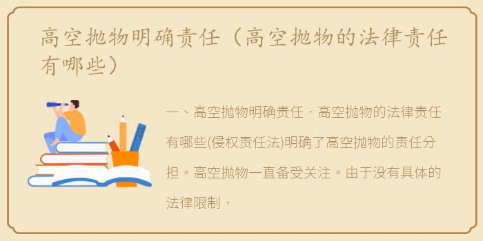 一、高空抛物明确责任,高空抛物的法律责任有哪些(侵权责任法)明确了高空抛物的责任分担。高空抛物一直备受关注。由于没有具体的法律限制,此类事件屡见不鲜,屡禁不止,处理此类事件的结果也不尽相同。
