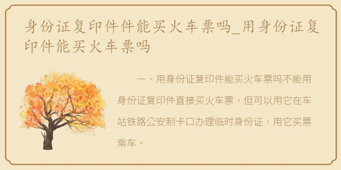 不能用身份证复印件直接买火车票,但可以用它在车站铁路公安制卡口办理临时身份证,用它买票乘车。
