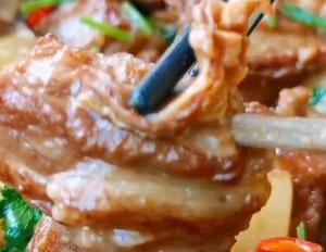 加入啤酒,啤酒没过羊排就可以,然后盖上盖子,大火烧开,烧开后转小火炖40分钟时间差不多了,我们打开看一下,哇,好香啊。这个时候的阳台就已经熟了,再把萝卜加进来,翻拌均匀,然后盖上盖子再煮20分钟时间差不多了。
