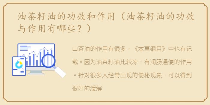 山茶油的作用有很多,《本草纲目》中也有记载。因为油茶籽油比较凉,有润肠通便的作用。