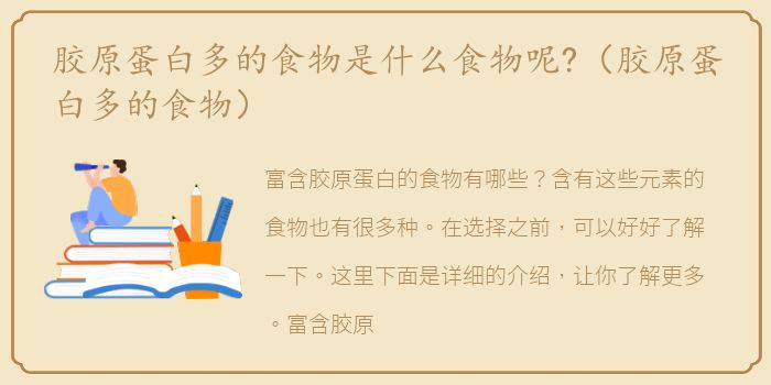 这里下面是详细的介绍,让你了解更多。富含胶原蛋白的食物:例如,猪皮,猪猪蹄、甲鱼等。