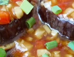 煮至汤汁变粘稠,像这样就可以了,先关火备用。我们的茄子也已经蒸的差不多了,把料汁淋在茄子上。