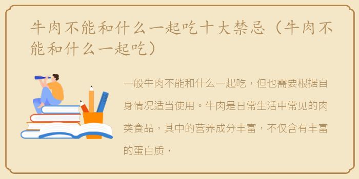 一般牛肉不能和什么一起吃,但也需要根据自身情况适当使用。牛肉是日常生活中常见的肉类食品,其中的营养成分丰富,不仅含有丰富的蛋白质,还含有丰富的微量元素、氨基酸等成分,可以满足人体对营养物质的需求。