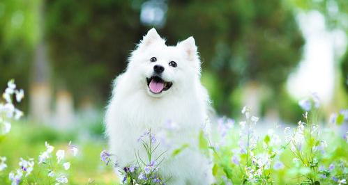 选择皮毛厚、毛细血管软、头扁平、口鼻尖、眼睛明亮、耳朵竖立、尾背卷曲、皮毛丰满、四肢有力、皮毛纯白的犬。