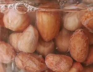 首先准备150克花生米,倒入碗中,加入清水,用清水清洗一下表面的灰尘,洗净之后控干水分,装入碗中,再打入两个鸡蛋,然后倒入料理机中,加150毫升清水,选择果汁键打成花生糊。再准备300克面粉,加三克酵母粉,一勺白糖,促进酵母发酵,先把它们搅拌均匀,然后倒入我们打好的花生糊一边倒,一边搅拌,搅拌成这种面絮状。