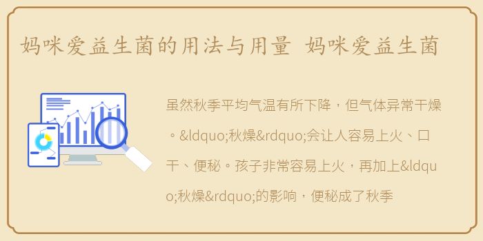 孩子非常容易上火,再加上“秋燥”的影响,便秘成了秋季孩子的常见病。当宝宝食欲不佳,腹胀时,你需要小心便秘!我可以给我的孩子妈妈爱益生菌粉。