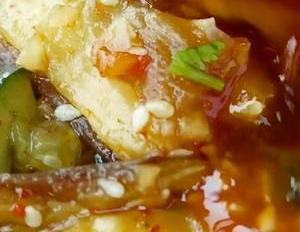 哇,好香啊,这个料汁就已经很。香了,再把它搅拌均匀,喜欢吃香菜的还可以加点儿香菜,这样做的茄子不用油炸,不用炒,清淡爽口又开胃下饭。