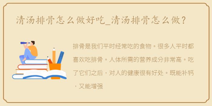 有的人喜欢吃红烧排骨,有的人喜欢吃清汤排骨。下面详细介绍一下清汤排骨的做法。