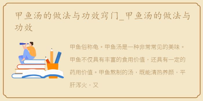 很多人也会在家做甲鱼汤,但做法总是欠缺。所以我们来介绍一下甲鱼汤的制作方法。
