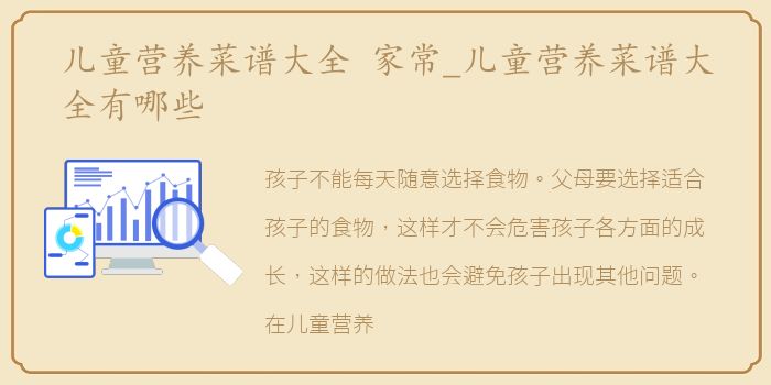 在儿童营养食谱大全中,了解了儿童营养食谱之后,我们就可以按照上面的方法来制作儿童营养菜肴了。但需要注意的是,吃儿童营养菜时,要让孩子选择适量,有利于身体的营养吸收,使孩子快速成长。