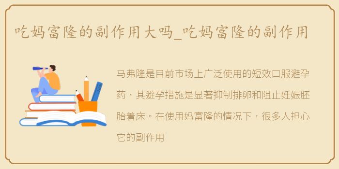 马弗隆是目前市场上广泛使用的短效口服避孕药,其避孕措施是显著抑制排卵和阻止妊娠胚胎着床。在使用妈富隆的情况下,很多人担心它的副作用。