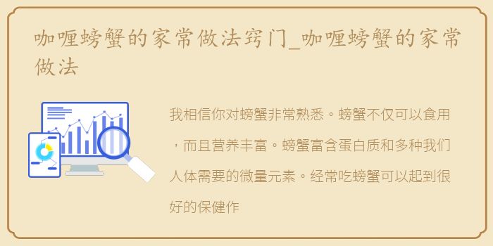 我们知道,螃蟹不仅好吃,而且营养丰富。经常吃螃蟹对我们的健康有好处。