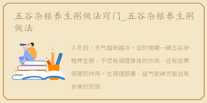 入冬后,天气越来越冷。这时候喝一碗五谷杂粮养生粥,不仅有调理身体的作用,还有祛寒保暖的作用。