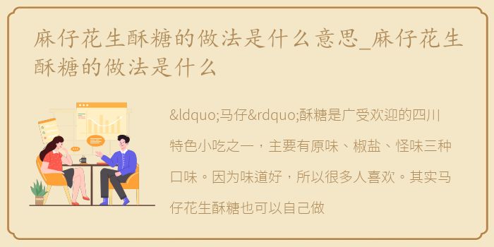 “马仔”酥糖是广受欢迎的四川特色小吃之一,主要有原味、椒盐、怪味三种口味。因为味道好,所以很多人喜欢。