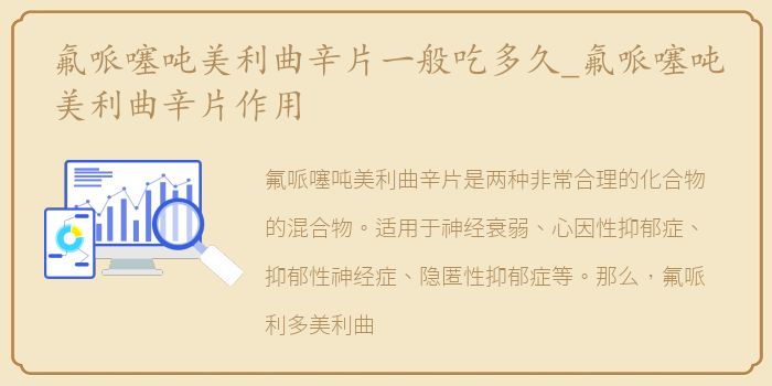 氟哌噻吨美利曲辛片是两种非常合理的化合物的混合物。适用于神经衰弱、心因性抑郁症、抑郁性神经症、隐匿性抑郁症等。