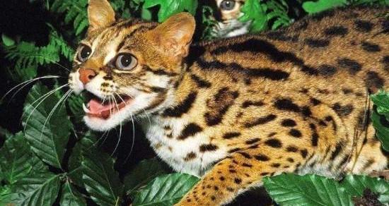 豹猫是一种野猫,棕色的皮毛上布满黑色的豹纹。但由于其皮毛美观,被大量捕杀和交易,豹猫种群受到极大威胁,数量锐减。如今已被《中国濒危动物红皮书》列为易危野生动物。