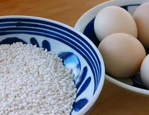 大家好,今天我们用鸡蛋和糯米来做好吃的。首先把鸡蛋放一旁备用,再准备150克的糯米,倒入清水清洗干净,然后浸泡一个晚上,再准备六个鸡蛋,打入一个无油无水的大碗中。