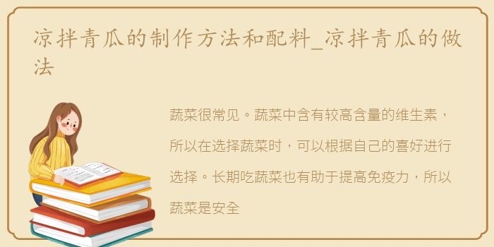 长期吃蔬菜也有助于提高免疫力,所以蔬菜是安全的选择。凉拌黄瓜的做法呢?这样的美食也受到很多人的喜爱,尤其是在夏天。