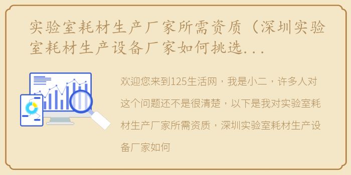 欢迎您来到125生活网,我是小二,许多人对这个问题还不是很清楚,以下是我对实验室耗材生产厂家所需资质,深圳实验室耗材生产设备厂家如何挑选?需要达到什么标准?精心的整理,预计阅读30秒。