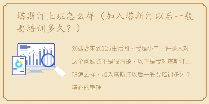 欢迎您来到125生活网,我是小二,许多人对这个问题还不是很清楚,以下是我对塔斯汀上班怎么样,加入塔斯汀以后一般要培训多久?精心的整理,预计阅读30秒。