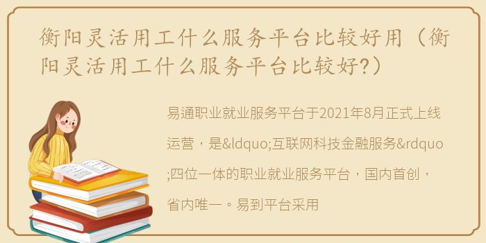 欢迎您来到125生活网,我是小二,许多人对这个问题还不是很清楚,以下是我对衡阳灵活用工什么服务平台比较好用,衡阳灵活用工什么服务平台比较好?精心的整理,预计阅读30秒。