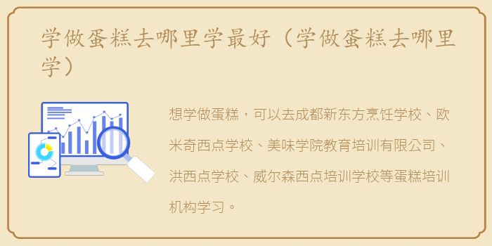 想学做蛋糕,可以去成都新东方烹饪学校、欧米奇西点学校、美味学院教育培训有限公司、洪西点学校、威尔森西点培训学校等蛋糕培训机构学习。