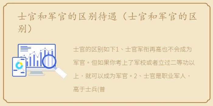 士官的区别如下1、士官军衔再高也不会成为军官。但如果你考上了军校或者立过二等功以上,就可以成为军官。2、士官是职业军人,高于士兵(普通士兵)。在我国,士官一般从服完役的士兵中选拔,也可以直接从军队以外招收有专业技能的公民成为士官。士官不属于干部序列,不佩戴工龄徽章。