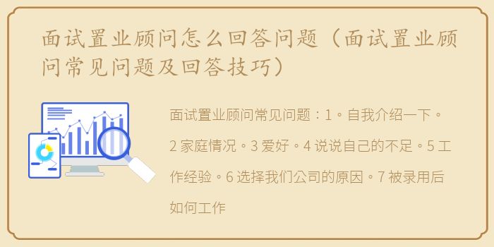 面试置业顾问常见问题:1。自我介绍一下。2.家庭情况。3.爱好。4.说说自己的不足。5.工作经验。6.选择我们公司的原因。7.被录用后如何工作?8.雇佣你的原因。9.能给公司带来什么。10.离开上一家公司的原因。