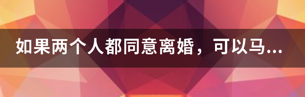 网上有很多关于二个人同意离婚可以马上办吗的知识,也有很多人为大家解答关于二个人同意离婚可以马上办吗的问题,今天小编为大家整理了关于这方面的知识,让我们一起来看下吧!