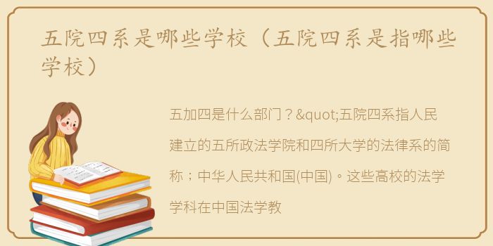 五加四是什么部门?"五院四系指人民建立的五所政法学院和四所大学的法律系的简称;中华人民共和国(中国)。这些高校的法学学科在中国法学教育领域发挥着重要作用,对中国的法制发展和法制建设产生了重大影响。