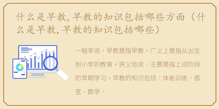 一般来说,早教是指早教。广义上是指从出生到小学的教育。狭义地说,主要是指上述阶段的早期学习。