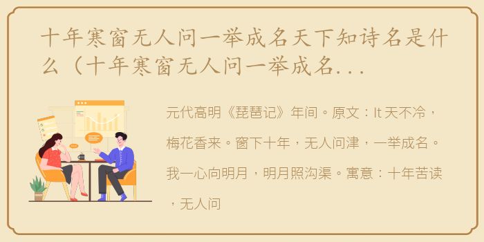 公元《琵琶记》年元人高明说:十年寒窗,无人问津,他一举成名。"他以刻苦读书的精神激励士人追求做官发财。"十年寒窗意味着努力,十年不是一个实数。